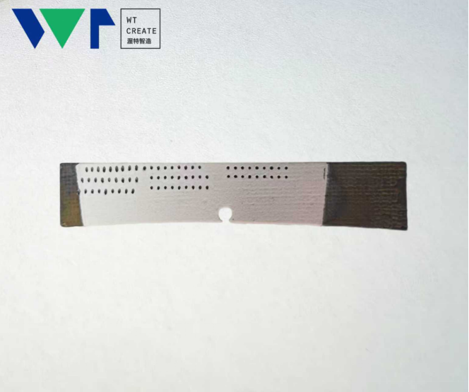 材料特點:材料厚度<0.3mm,縫寬50um加工優勢:切縫光滑無崩邊,幾乎無錐度,零件無翹無變形